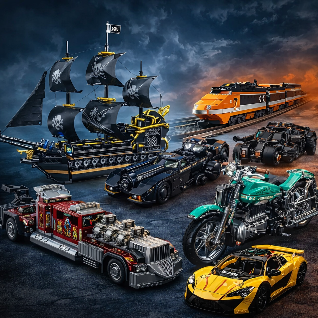 motocicletas, arquitectura, flores decorativas, ciencia ficción y sets coleccionables.